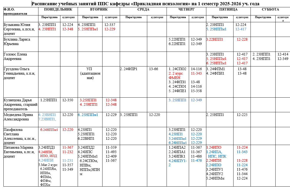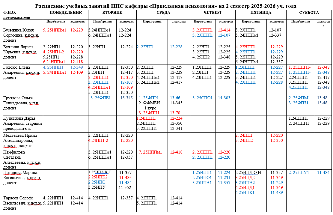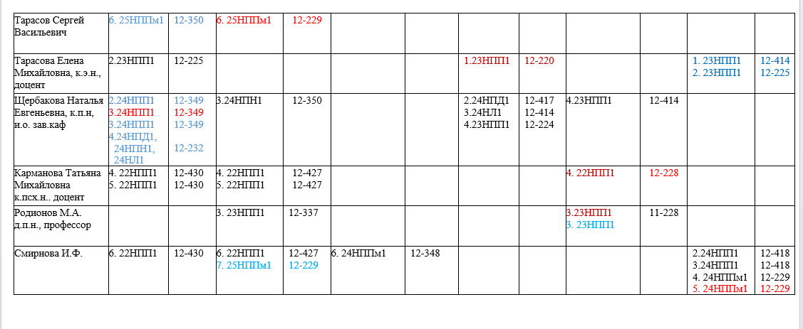 РАСПИСАНИЕ ПРЕПОДАВАТЕЛЕЙ