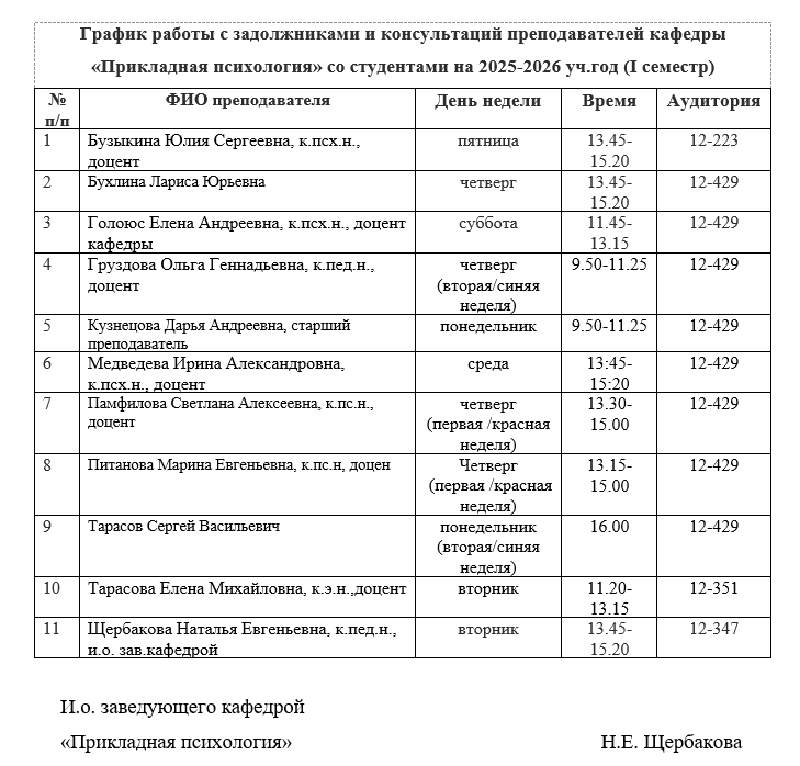 ГРАФИК ПРИЕМА АКАДЕМИЧЕСКИХ ЗАДОЛЖЕННОСТЕЙ